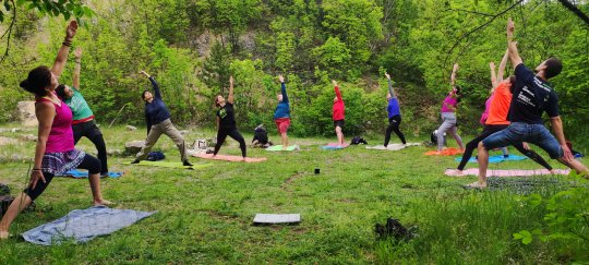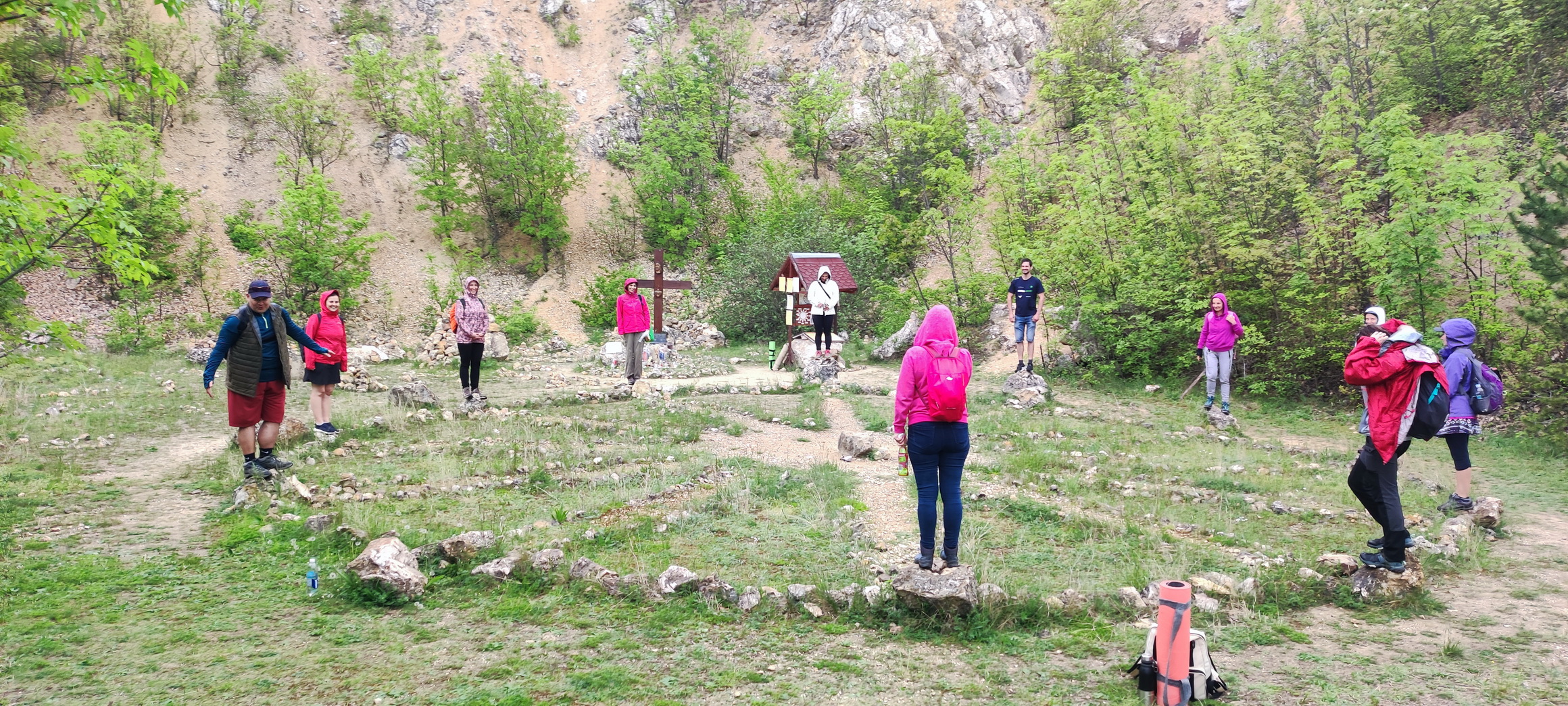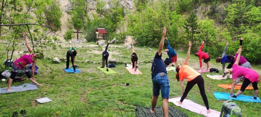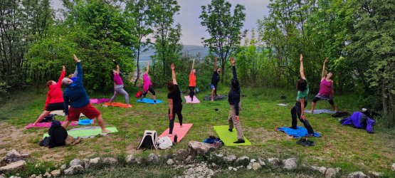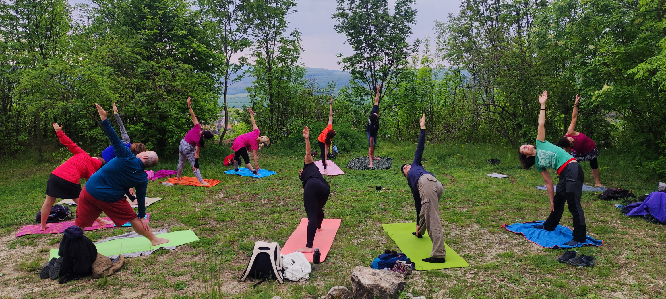 "Meleg felhős időben Pilisvörösvárrról Pilisszántóra 12km-t sétáltunk. Útközben az egyik meredek emelkedő után bemutatkozó körben kicsit megismertük egymást, majd "Ki vagy?" páros gyakorlatot végeztünk, amit úgy láttam, nagyon tetszett mindenkinek. Pilisszántó határában a gyönyörű kilátás mellett letáboroztunk a fűben és megebédeltünk, majd 14:00 óra körül megérkeztünk a Gyógyító Csillaghoz, ahol másfél óra hatha-jóga flow ászanasorom után a csillagot körbeálltuk, majd rövid csend után beálltunk a kör közepébe: A csikung tisztító energiagyakorlat közben elkezdett szakadni az eső, jól átáztak többen is, de senki nem futamodott meg, jól átmosta az eső testünket lekünket... A legycsodálatosabb kilátáshoz, a Boldogasszony Kápolnához már nem jött fel mindenki. Hideg volt és senki nem gondolta, hogy ott csodálatos napsütés lesz. Nagyon szuper volt veletek a természetben a friss levegőn jógázni. Büszke vagyok mindenkire, hogy kicsit kiléptetek a komfortzónátokból és új barátokra leltetek. Áldás és békesség legyen további utunkon.
