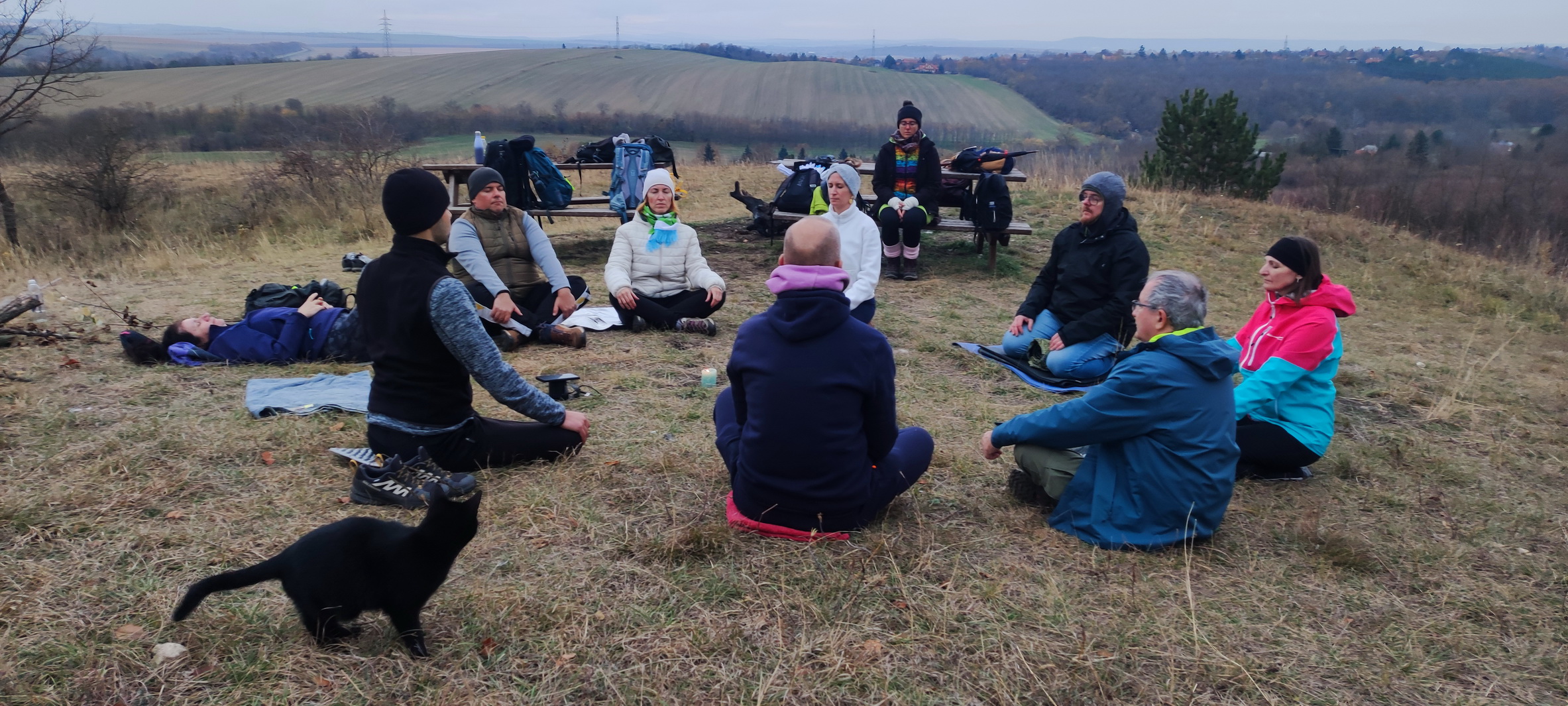 " Ezen a különleges 8 kilóméteres jógaTúrámon Dr. Sándor Csaba légzésterapeuta volt a vendégünk, akivel különféle pránayámákat gyakoroltunk kint a friss levegőn a természet ölelésében a Biatorbágy Madárszirt dombján. Ahogy besötétedett, tábortüzet raktunk majd a minket körülvevő sötétségben a tűz melege mellett, a nehézség kártyák átbeszélése után 108 OM mantrát zengettünk kb. 40 percig. Számomra nagyon varázslatos volt. Nagyon mély megtapasztalása a békének és a nyugalomnak, különleges rezgés járta át a lényünket. Örülök hogy velünk tartottatok és együtt jógáztunk. És örülök annak a kis fekete cicának hogy milyen sokáig velünk volt, körbedorombolt mindenkit és emelte a jelenléte a rezgésszintünket ezen a felhős napon. "