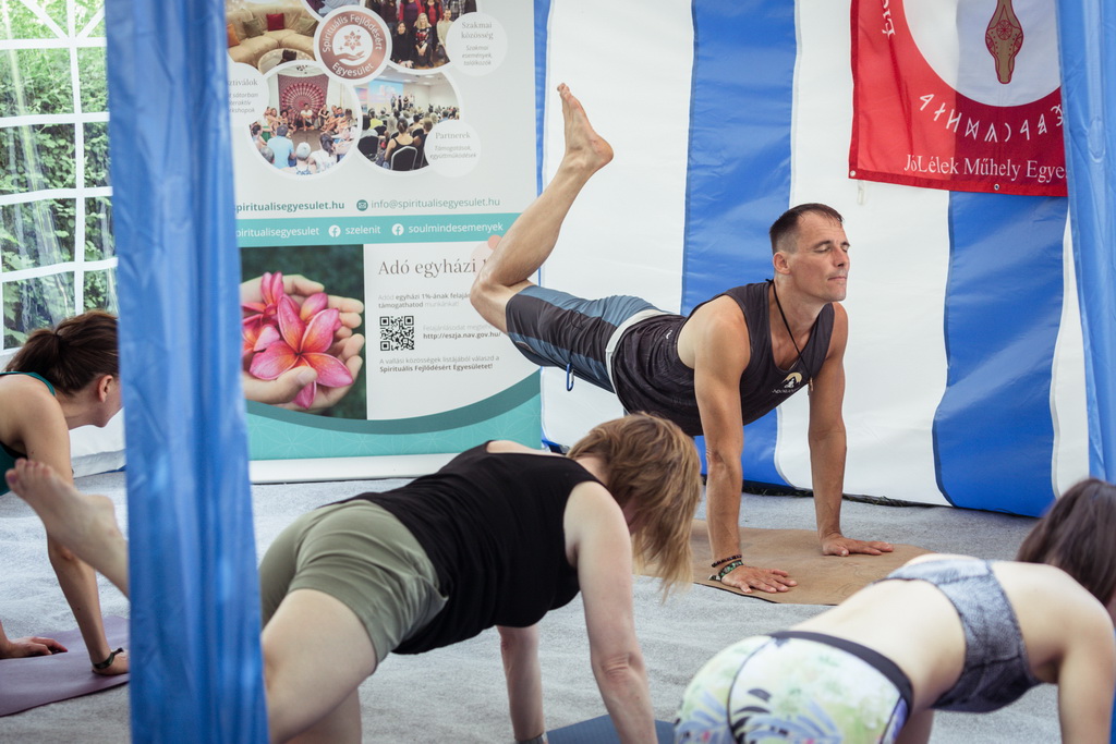 - Először voltam fesztiválon, így előadóként. Életem leszuperebb fesztiválja volt. Mindennapra volt feladatom, minden délután gerincjógát tartottam a Balance sátorban és volt pár hatha órám is délelőtt a Szelenit sátorban. Csütörtökön volt az első fellépésünk a MANTRAPOP együttesünkkel, ami csodálatos életérzés volt, ahogy a kis utcán haladó emberek felfigyeltek a zenélésünkre és jöttek be a sátorba velünk énekelni. MAHESH és barátaival is felléptünk zenés mantrakörben a Verum színpadán, ami szintén egy csoda volt, és örök emlék hogy ilyen szuper zenészekkel zenélhettem együtt, várom a következőt! - Egy hétig sátraztunk a MANTRAPOP csapatunkkal egy nagyobb árnyékos parcellán, ez volt a kis közösségi terünk az együttesünkkel, ide tértünk mindig vissza. Rengeteg program volt, jóga, tánc, szertartás... Nagy volt az áramlás, csapattagunk Csala Barbara pszichológus és jogaoktató óráira rendszeresen jártunk és a csapatunkból jöttek hozzám is jógázni. Az estéktől kicsit tartottam, mivel éberalvó vagyok, minden hangra felébredek, így a füldugó fölé még egy munkavédelmi fülvédőt is felvettem hogy ne keltsenek fel éjszaka, nyugodtan tudjak aludni és kipihenten tudjak jógaórákat tartani. BEVÁLT! Reggel mindig korán keltem, megcsináltam a jógagyakorlásaimat, készültem az óráimra és 1-2 órát doboltam a balaton parton a reggeli után. - Hálás vagyok az egész Everness csapatának, és minden lelkes fesztiválozónak, hogy ilyen szuper fesztiválon együtt mozdulhattunk, énekelhettünk, táncolhattunk, nagyon kellemes élménybekben és programokban volt részünk előadóként és résztvevőként is. Nagyon hiányzik az EVERNESS hét, jövőre biztosan jövünk újra! " Fogadjátok szeretettel ezt a pár képet ami készült. Attak Emese és Erős Mariann is csinált párat...