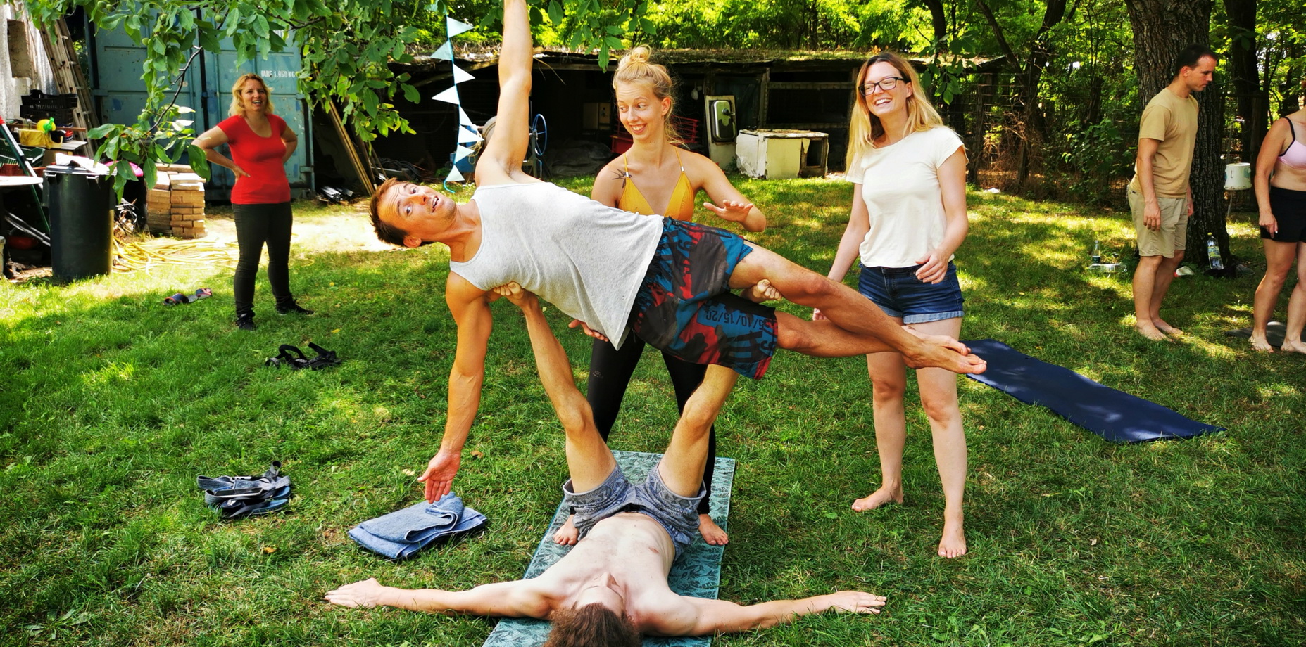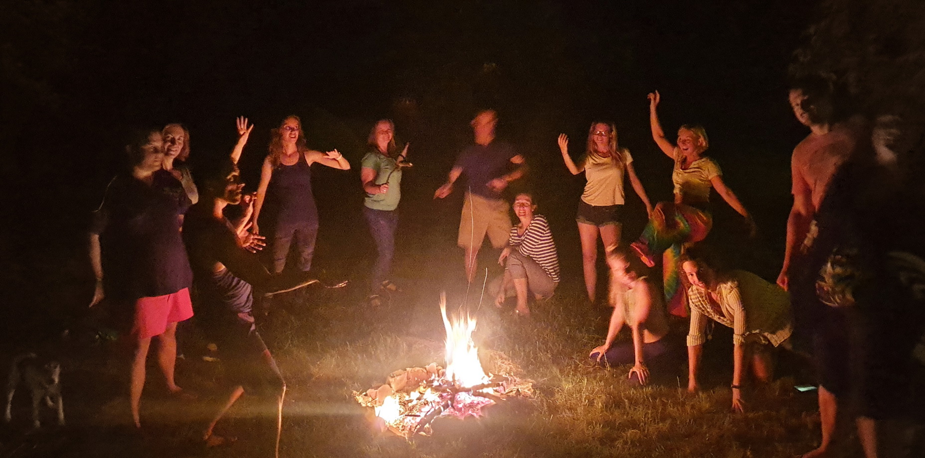 "Hatha-jógát tartottam a csapatnak a felsőlajosi elvonulásunkon. KolibriTánc néven Eszti pedig bámulatos és játékos szabad táncot vezetett le. Az esti férfi erő: Hakázásunk után a srácokkal csatlakoztunk a lányokhoz és folytattuk a szabad táncot az erdő közepén a tűz körül. A fantasztikus első nap és a másnapi "jóreggelt" indító jógám után Zoli szupeer akrojógát tartott... Finomakat ettünk, medencében csobbantunk, szabad ég alatt aludtunk és a közeli állatkertet is megnéztük. Csodásan éreztük magunkat Libertáliában."