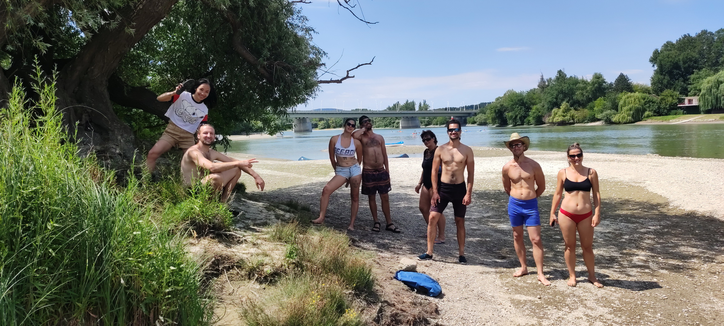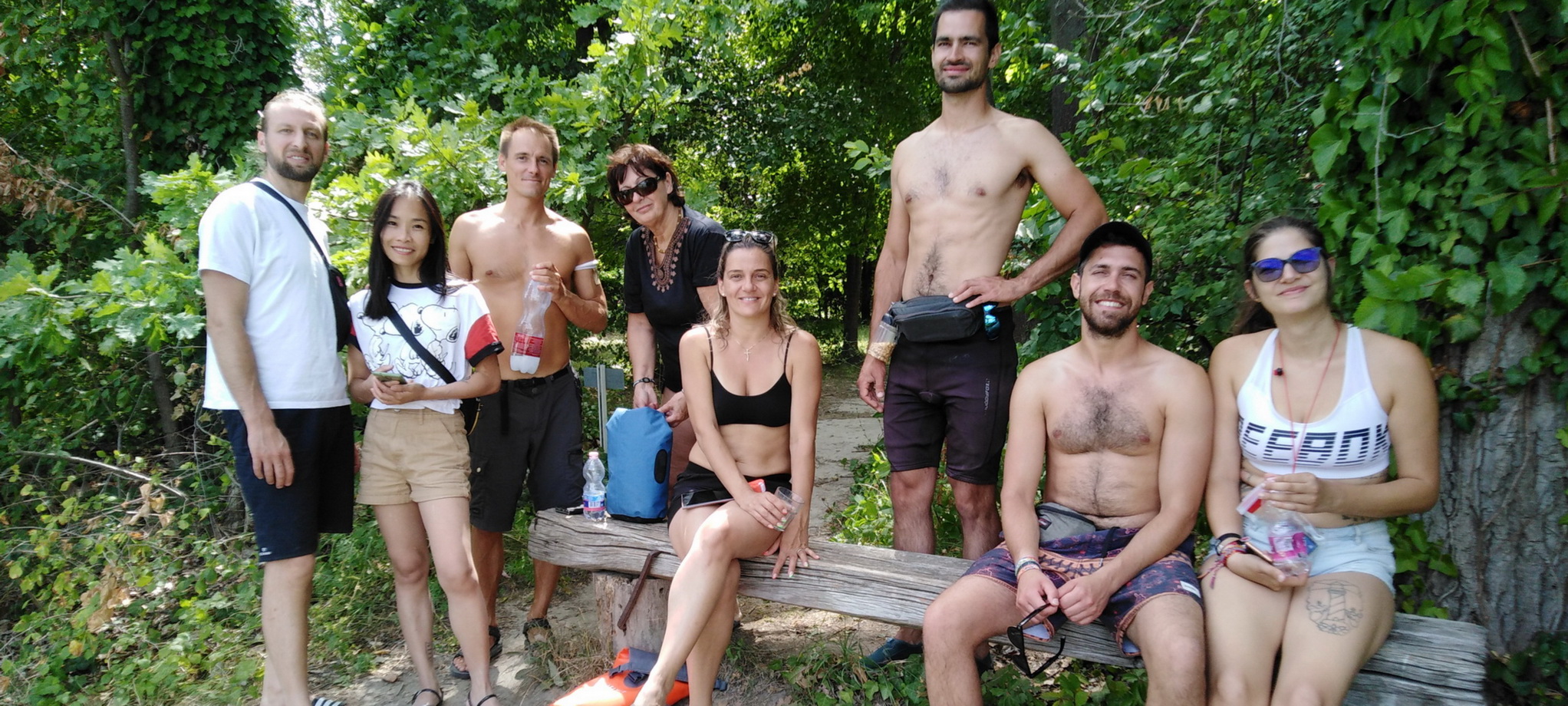 "Újra kedves csapattal, szuper evezésen voltunk: Római partról indultunk és a kicsi 4-es kenuval meg a 8-as "túrórudival" eveztünk le a Lupa-szigetre a Béke-2 csónakháztól. Nagyon szépen sütött a nap, ebéd után felderítettük a szigetet. Robi barátomék is velünk voltak (roMantra) és hoztak gitárt így Mantrákat énekeltünk a hűs fák alatt...Majd egy akrobata kislány odajött az anyukájával mert látta hogy egy körben zenélünk és Pál akrobatikázott 3 labdával...Az aranyos kislány megmutatta hogyan lehet 4 labdát is egyszerre dobálni. Csodálatos volt, tapsvihar!! Hatha-jógaórám után 17kor indultunk vissza a Rómaira, ahol lecsutakoltuk a kenukat majd vacsoráztuk a parton. Csodás nap volt újra, köszönöm hogy jöttetek, ilyen csapattal mindig szívesen evezek. Következő dátumok: Augusztus 6; augusztus 14; augusztus 20-21; szeptember 11; szemptember 25. És most két videót is megtekinthettek, ami spontán készült:
