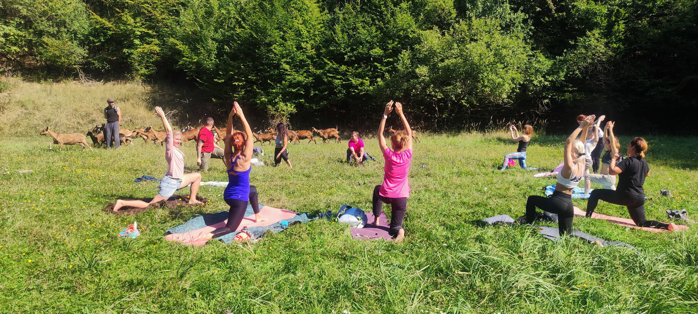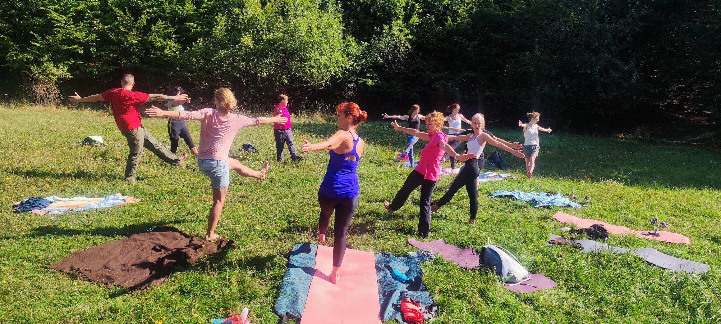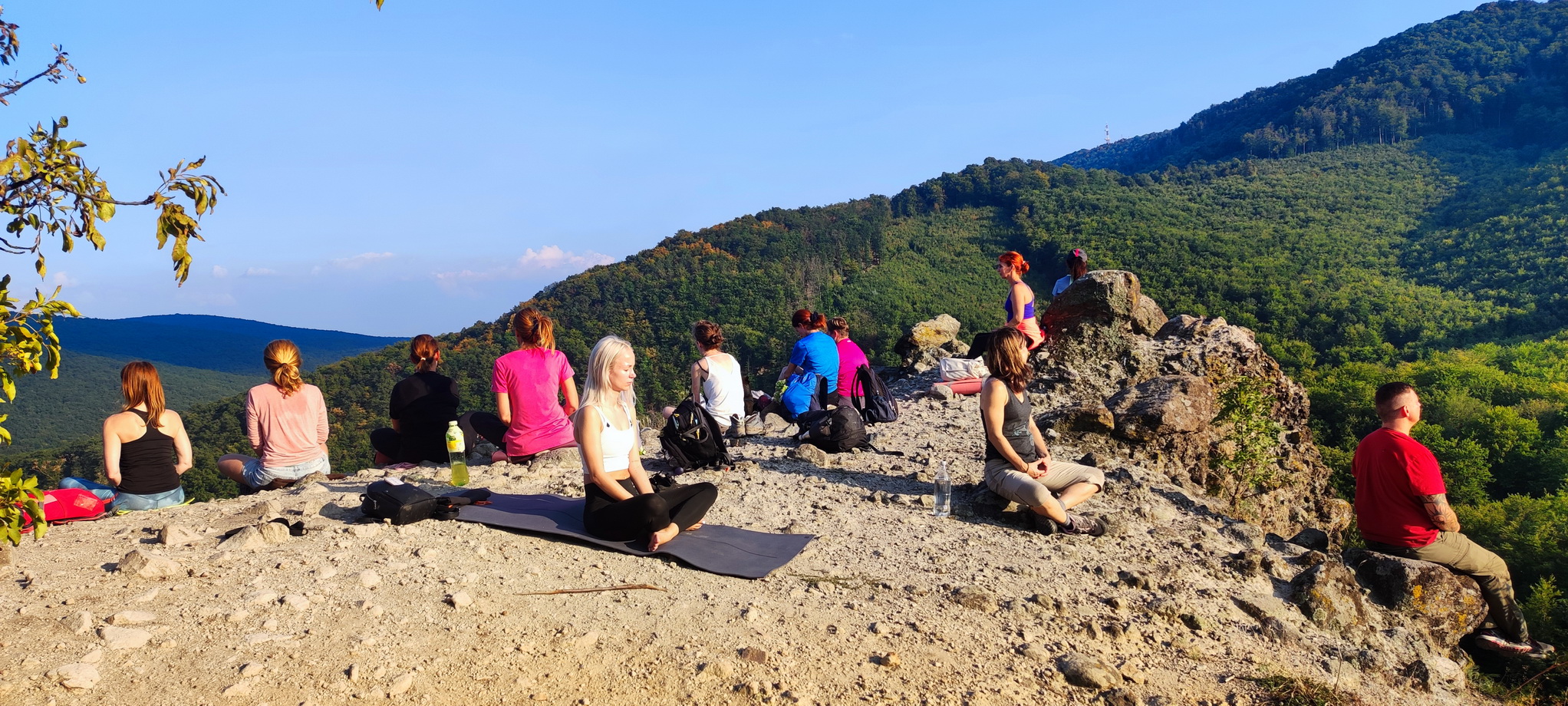 " Pilisszentléleken a Pálos Rom közelében a zöld réten, a friss levegőn 1,5 óra HATHA-JÓGÁT tartottam. A jóga közben megjöttek a nap meglepetésvendégei: A távolban felfigyeltem valami csilingelésre, egy aranyos kecskecsorda jelent meg a réten, akik nagyon meg voltak lepődve, nagy ívben kikerültek minket miközben mi csodáltuk a jelenlétüket. A jóga után ebédszünetet tartottunk, majd felsétáltunk a meredek kaptatón az ÁRPÁD VÁR-hoz és Csikung energiagyakorlatot végeztünk, majd a Fény Ereje kártyáktól kértünk személyes útmutatást. A következő ménrót övi pontunk a RÁM-HEGY volt, ahol 30perc ZEN meditációt végeztünk a szakadéknál a gyönyörű napsütésben. A táj gyönyörű, mindenkinek ajánlom meditációra, a Ferency sziklánál egy kis szentély is található. A MAGAS-HEGYre sajnos nem maradt időnk, a túra legnehezebb része maradt hátra, felsétáltunk Dobogókőre. A túra teljes hossza 10 km volt, szintemelkedés 629 méter. Szellemi szinten és fizikai szinten is fárasztó volt ez a nap, gratulálok mindenkinek aki rérszt vett a szellemi gyakorlatokban is. További békés napokat kívánok mindenkinek. Áldás. "